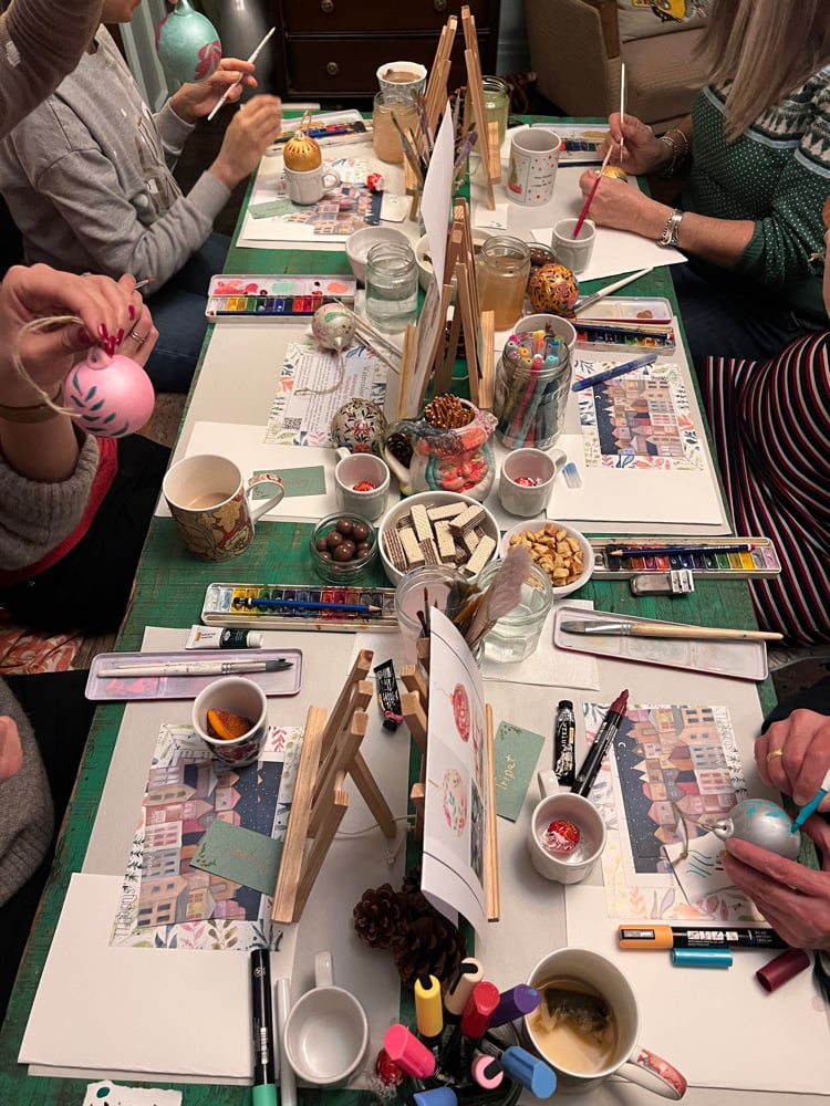 The workshop includes a watercolour wreath painting and candle painting which is guided but if preferred, you can free paint.